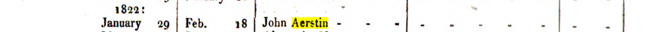 John may have had children with a woman recorded variously as Elizabeth Bagenhall, Backenhall, or Ballingale. The records of Samuel (1808) Ann (1807), Jane (1810), and Charles Aerstin (1814) suggest that a parallel domestic life existed alongside his role as plantation owner. There is also a record for the birth of Thomas Aerstin with Louisa Harris in 1820, Elizabeth Helen Aerstin with Catherine Pire in 1829.