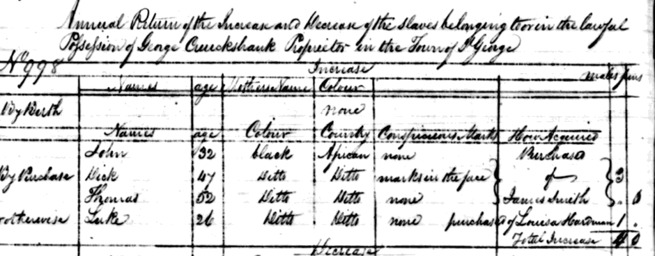 George Cruikshank went on to claim compensation for 3 enslaved people. There was a black African called John who was one of them but born c.1791. As birth dates of enslaved Africans were not recorded by traders, their age was assumed and manipulated for commercial gain. Could this in fact be the John we are following. If so, he managed to survive through this entire ordeal!