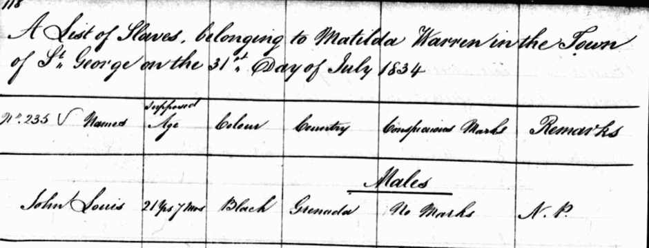 Matilda went on to claim compensation for the 5 people she had enslaved in 1834. One of which was John Louis. He survived! He was also just 21 years old so, after the period of apprenticeship, he would have been free to live a life more of his choosing.