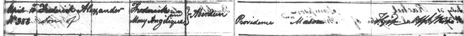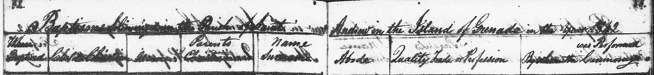 Frederick Aberdeen and his wife, Mary Angelique Aberdeen, were residents of the Providence Estate in the parish of St Andrew, Grenada. Records show that they lived on the estate during the final years of slavery and the transition into emancipation. They had a son Frederick Alexander ABERDEEN who was baptised on 12 Apr 1842 and the family were still on the estate at this time.